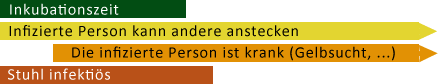 Hier geht es nur um die, durch Hepatitis-Viren ausgelöste infektiöse (also übertragbare) Gelbsucht. Es gibt auch andere Hepatitisformen, z.B. bei Leber- und Gallenblasenerkrankungen. Der Begriff Hepatitis heißt Leberentzündung (von griechisch Hepar=Leber und der griechischen Endung -itis=Entzündung). Es gibt verschiedene Hepatitis-Viren (s. Abb. und Tabelle), die unterschiedlich schlimme Krankheiten auslösen. Die Leberentzündung kann unterschiedlich schwer sein und äußert sich in Störungen der Funktion der Leber.