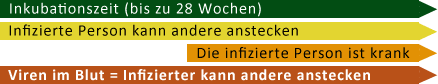 Damit wird der Zeitraum bezeichnet, zwischen Infektion und Ausbruch der Krankheit. Irgendwann innerhalb der Inkubationszeit bricht die Krankheit in den allermeisten Fällen (statistische Erkenntnis) aus.